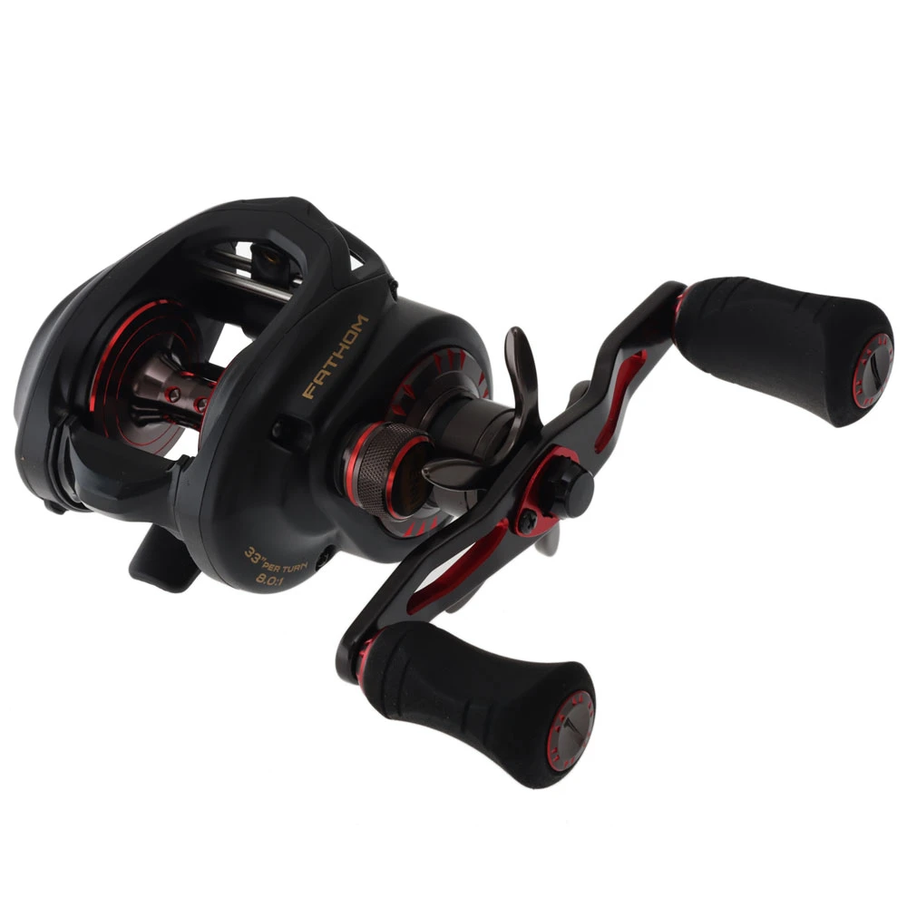 The PENN Fathom 200 Low Profile High Speed Baitcaster Reel offers all the features you need to tackle the toughest saltwater fish. The Full Metal Body and Right Side plate, matched with a brass main gear and bearing supported pinion offer a drivetrain with unparalleled power.