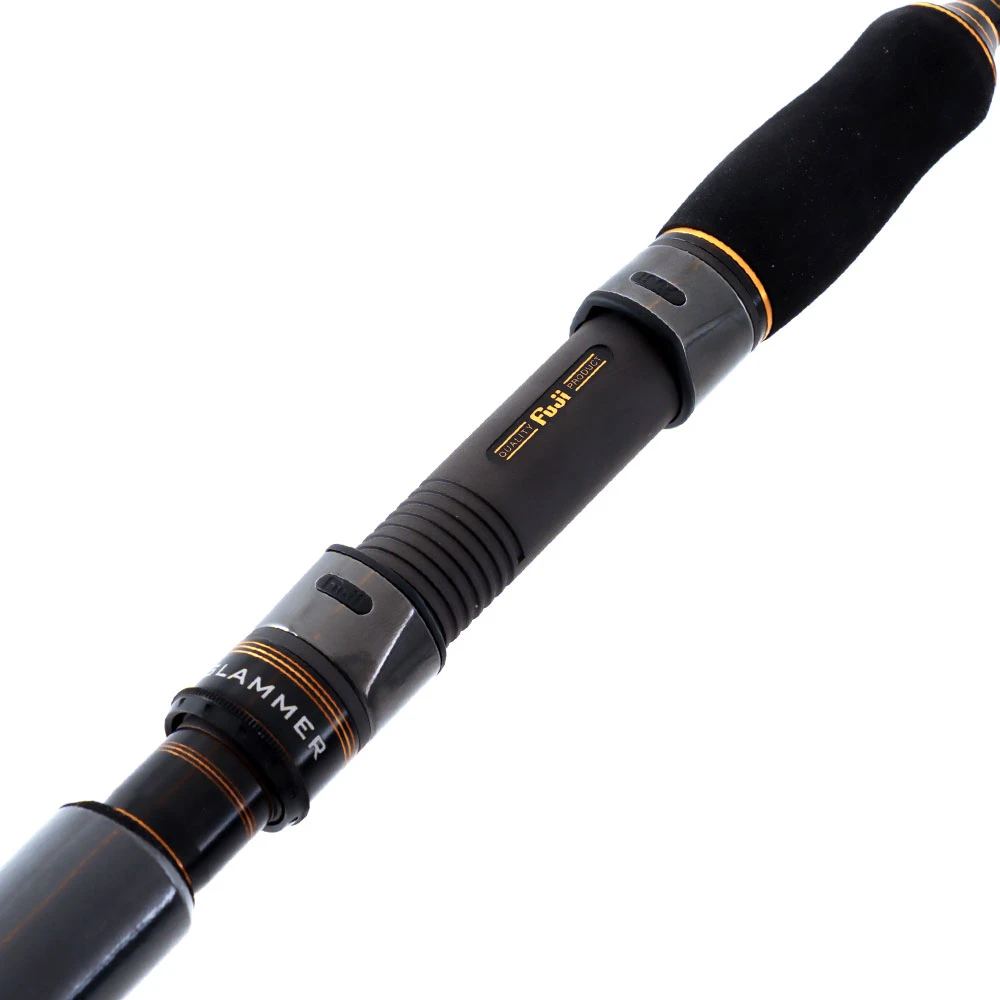 The Slammer Rod features PENN’s RCB2 blank, consisting of a rolled composite core and outer layers of longitudinal glass to provide a lightweight, thin, and parabolic blank that flexes from grip to tip, distributing weight for extra durability. This parabolic blank offers sought after durability, balance, and recoil you need to work lures in areas ranging from reef structures to suspended schools of fish in both shallow and deep-water environments.