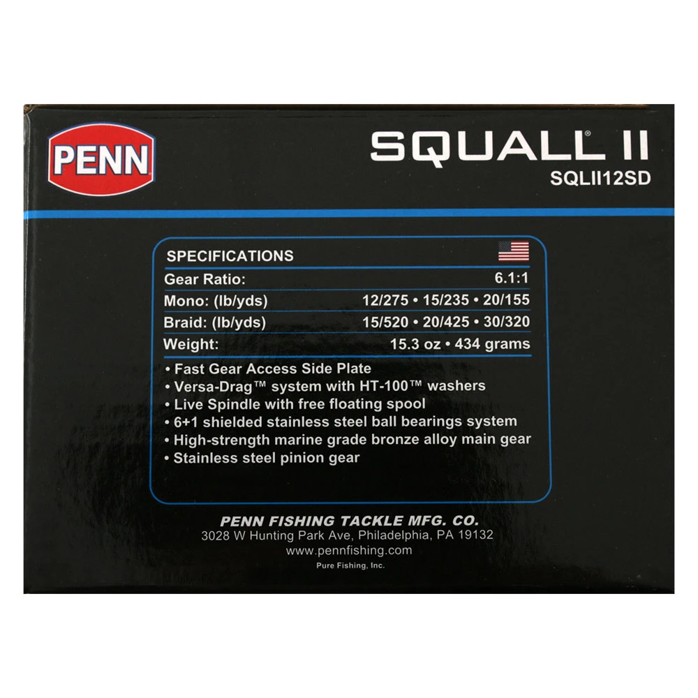 PENN Squall II 12 Star Drag Reel Specifications: